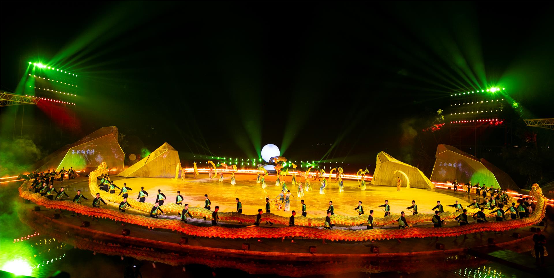 每到周末,銅梁玄天湖龍舞廣場(chǎng),大型非遺山水實(shí)景劇《追夢(mèng)·銅梁龍》都會(huì)在這里準(zhǔn)時(shí)上演,吸引眾多游客一探銅梁龍舞的獨(dú)特魅力?!蹲穳?mèng)·銅